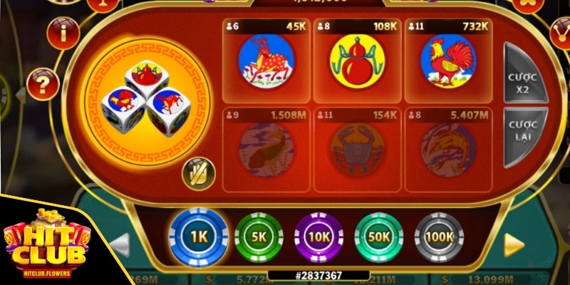 Cổng game HITCLUB mang đến trải nghiệm độc đáo với game bầu cua đổi thưởng online, giữ nguyên hình thức chơi truyền thống. Sử dụng 3 viên xúc xắc với 6 mặt tượng trưng cho 6 con vật tôm, cá, gà, bầu, cua, nai. Bàn chơi được thiết kế với khung in hình 6 con vật, tạo điều kiện lý tưởng cho người chơi đặt cược vào con vật mong muốn một cách dễ dàng.